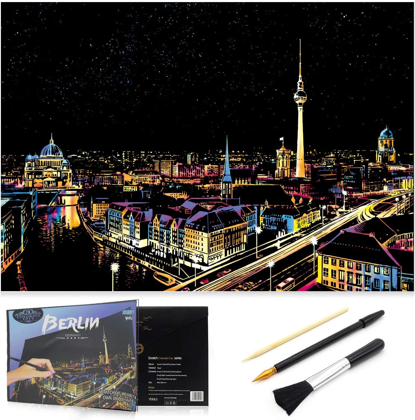 Ancient Building FuTaiKang 4Pcs Creative Scratch DIY Art Painting Paper Night View Buildings Scenery with Drawing DIY Stick Kit Adult Kids Scratchboards Arts, Crafts & Sewing